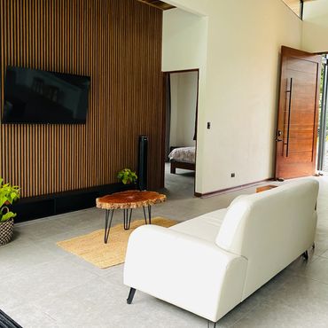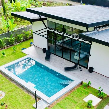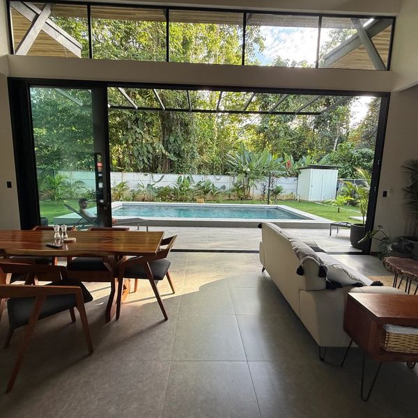 • Massive glass sliding doors connect the living room with the poolside terrace, enjoy seamless indoor/outdoor living with lush jungle views and fresh Caribbean breezes. Full-size private swimming pool just steps from your living room